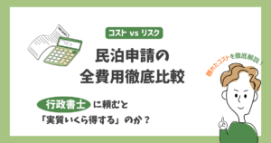 「民泊の許可申請を自分ですれば、行政書士への報酬分が浮いてお得だ」と考えていませんか。確かに、目に見える「現金」の支出だけを追えば、自力での申請が最も安く済むように思えます。 しかし、民泊ビジネスにおいて真に考慮すべきは […]